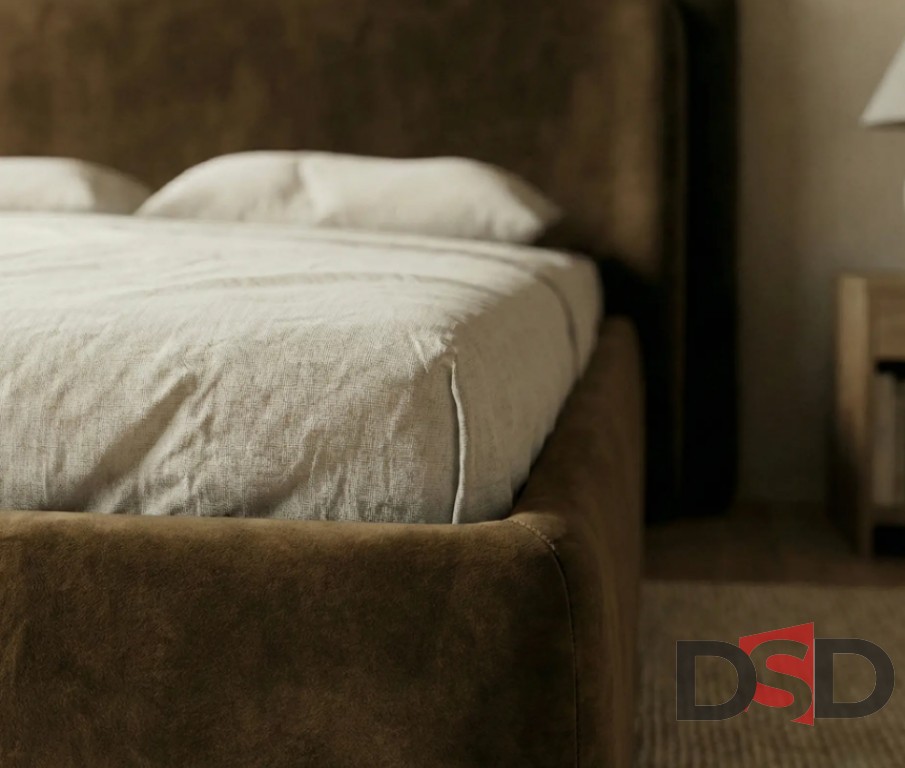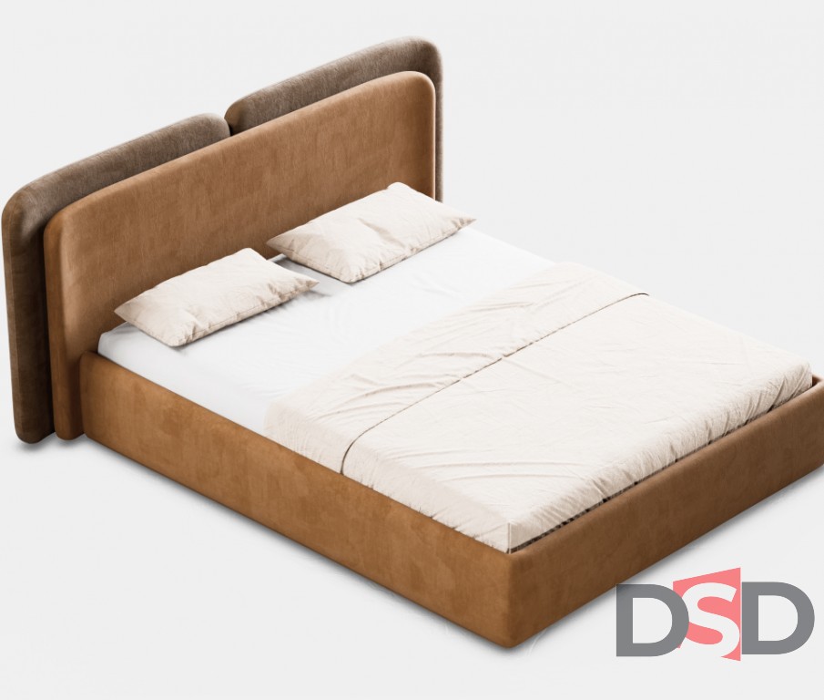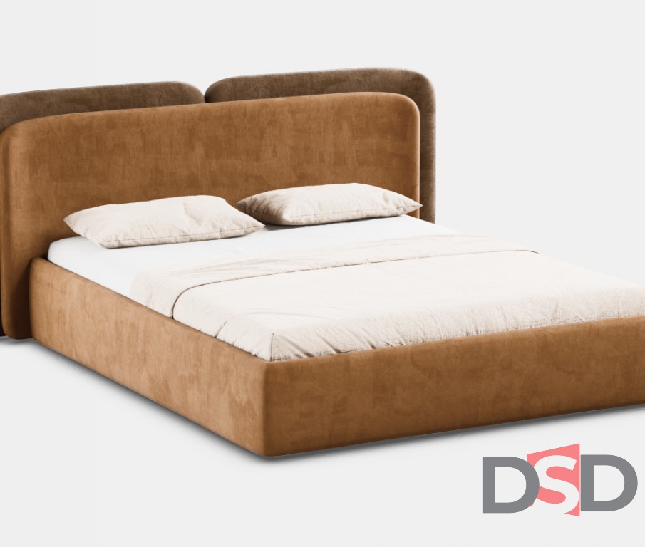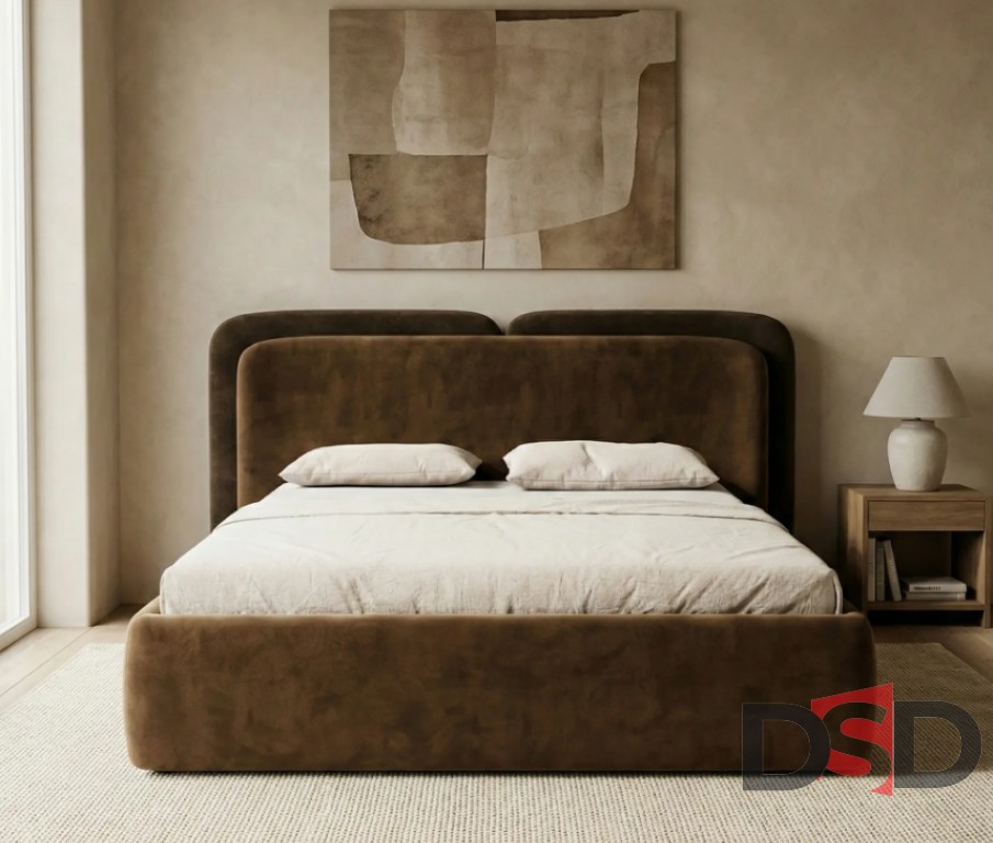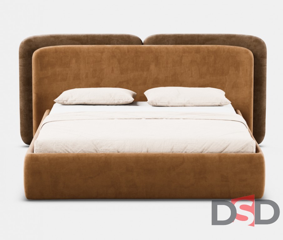Кровать с мягким объемным изголовьем и скруглённым корпусом в современном стиле